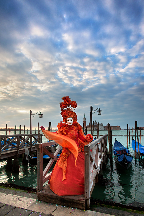 The opportunity arose a few years later, testing out and writing an article about Canon’s new flagship D-SLR, the 1DsMkIII. I booked myself on Charlie Waite’s company “Light and Land” Venice workshop in 2008. It turned out to be an overwhelming experience for the senses. Carnevale photography is often frantic for first timers. It’s most often the case of ‘shoot first, think later’. There are literally thousands of photographers; being able to think straight and creatively in such circumstances is difficult. Even so, I came away with many photographs that I was happy with. My photo “The Great Show” of Arnaldo, one of the most famous Carnevale masks became quite well known that year.