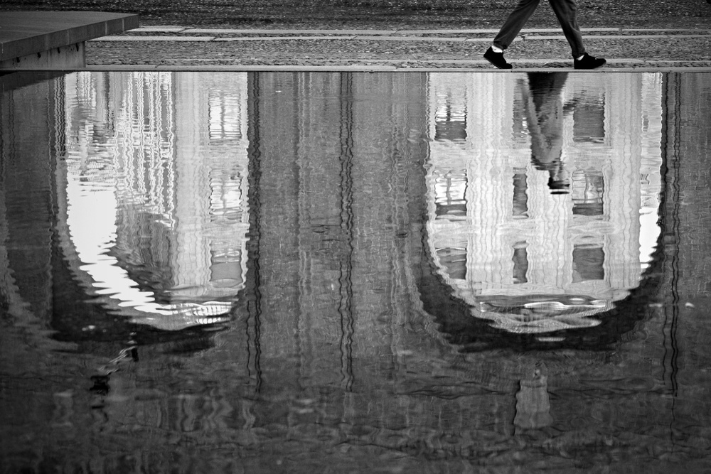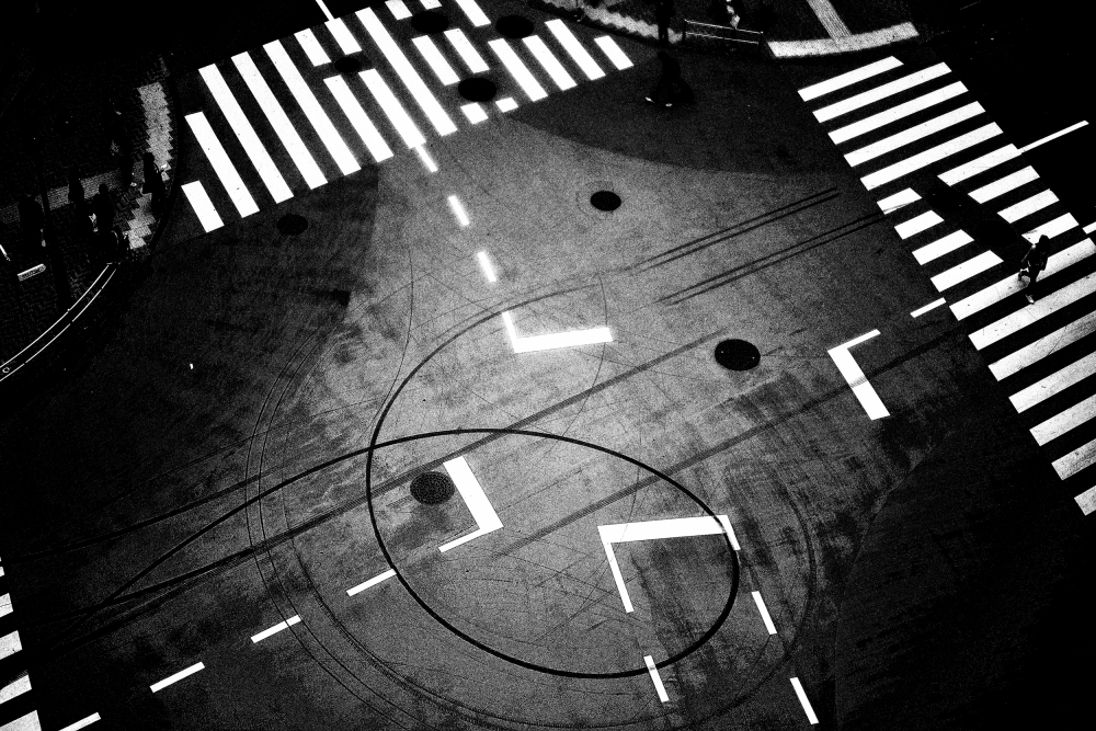 However, just under our feet there are amazing photographic subjects to discover. Perhaps a puddle reflection of the real world on a rainy day, a shadow flow, a pattern in the sidewalk or the opportunity of great geometric compositions from road intersections.