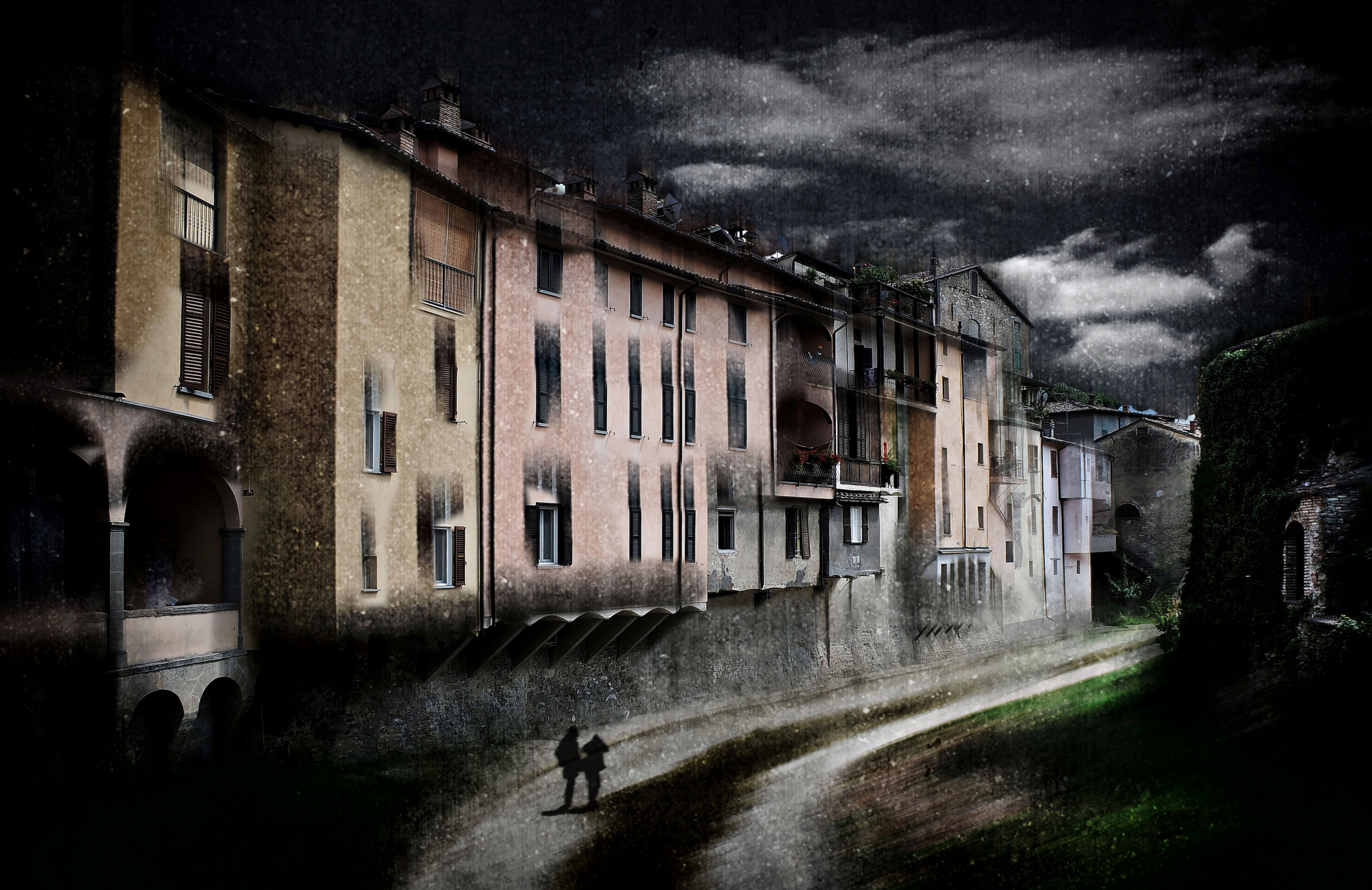 'Lungo le mura della città' was taken in Tarquinia, one of the oldest and most important Etruscan settlements in Lazio, almost 100 km from Rome. This town holds the charm and memory of centuries of history. The title shows this charm reflected in the medieval walls and towers. But I want to tell you a little secret about this photo. I took the picture of the two persons in Warsaw and the clouds in the background are a sky taken in Rome. These clippings were inserted later to give a greater impetus to the composition.