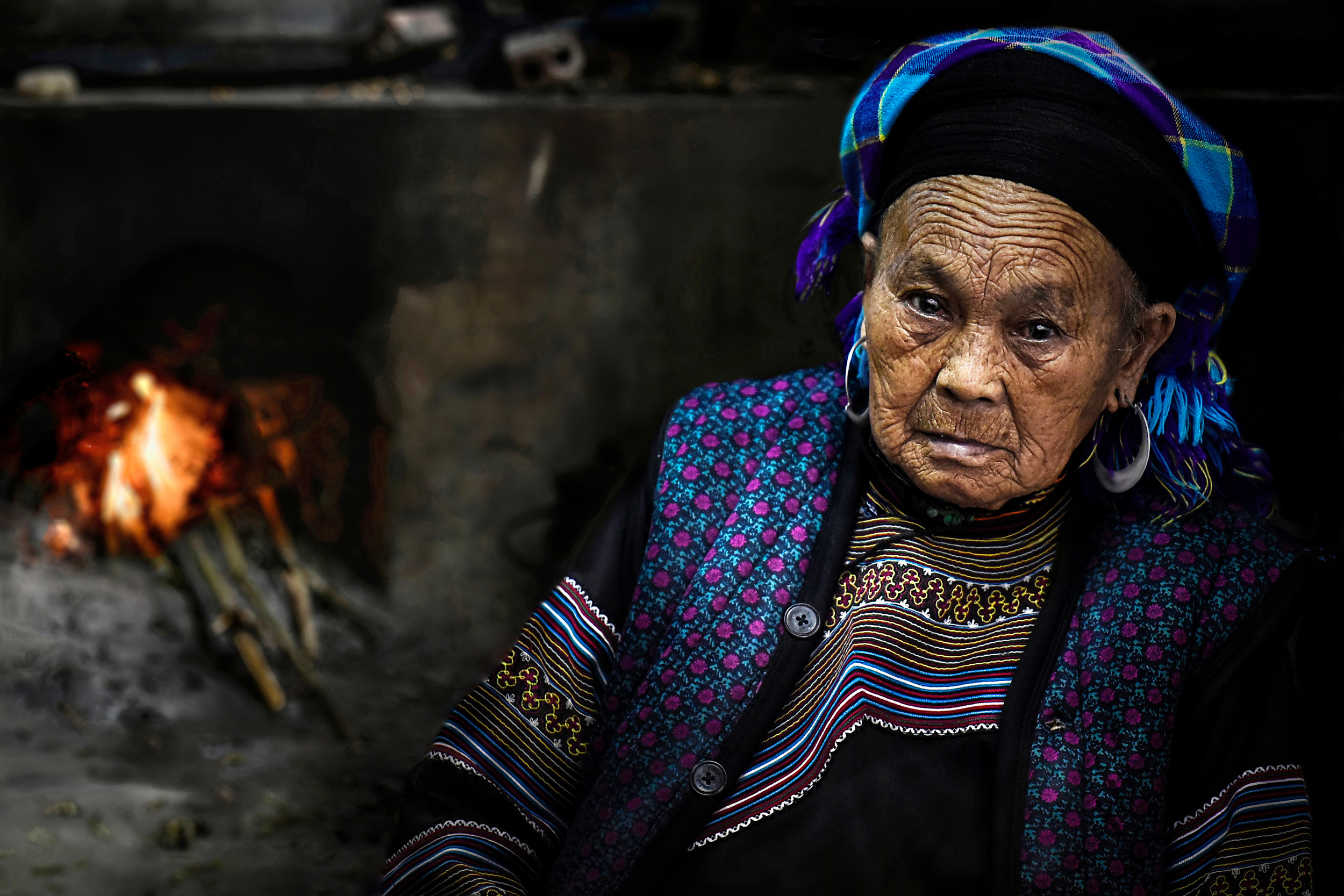 This is the romantic city of lanterns. I was photographing a beautiful girl passing by  when I suddenly turned around and saw something unexpected! The characteristic face of this very nice granny sitting on the threshold of a door.  She captured all my attention and I photographed her instantly.