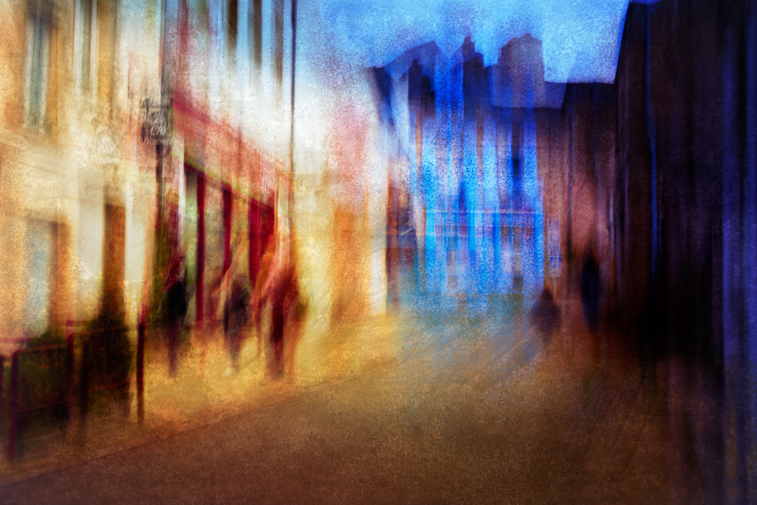 This image was taken in Guémené sur Scorff, a small historic town in Brittany. At the end of the street, there is a very old house with beautiful blue shutters fascinating me every time I'm strolling along. I took quite a number of ICM images, especially as a few people walked by. Ultimately, “Guémené” consists of two of these images, a double exposure that intensifies the colours. With the help of Affinity Photo, I added some textures with brushes to clarify contours and depth and finally, I added a bit more blue on the right side with the help of Color Efex - Nik Collection. That is how the image finally appeared on my screen the way I previously had in my mind. This is how I see Guémené sur Scorff, a colourful, mysterious place through where many people have passed where so many stories are hidden. I wish the walls could talk and tell me these stories. So, I tell my own story in my image, the story of what I perceive.