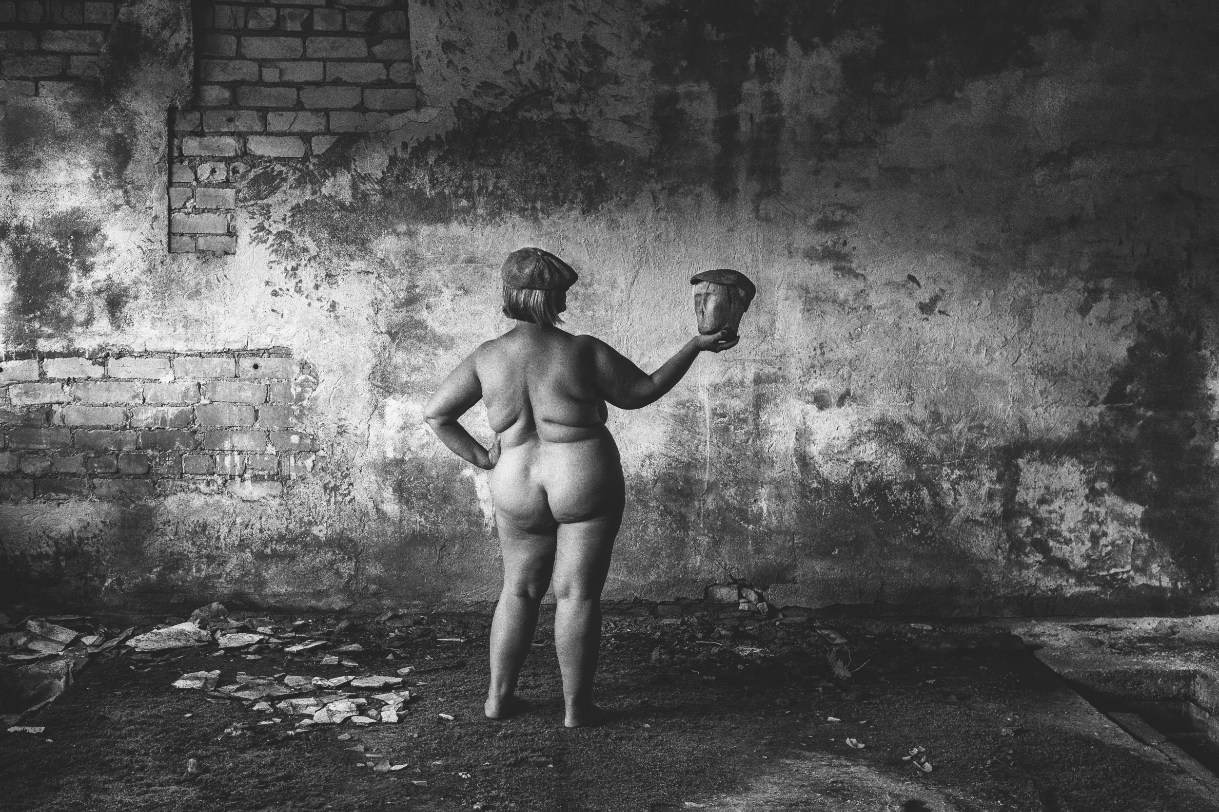 I love old houses, ruins. I had a solo exhibition in an old, half-ruined pub. I like to photograph there. When I find a half-ruined house, I immediately think of a project. Then I look for a person to photograph there.